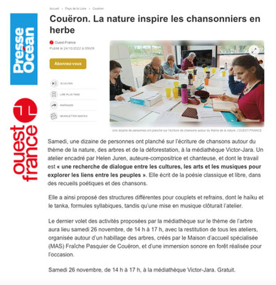 Prochains ateliers d'écriture de chanson (en visio ou en salle)